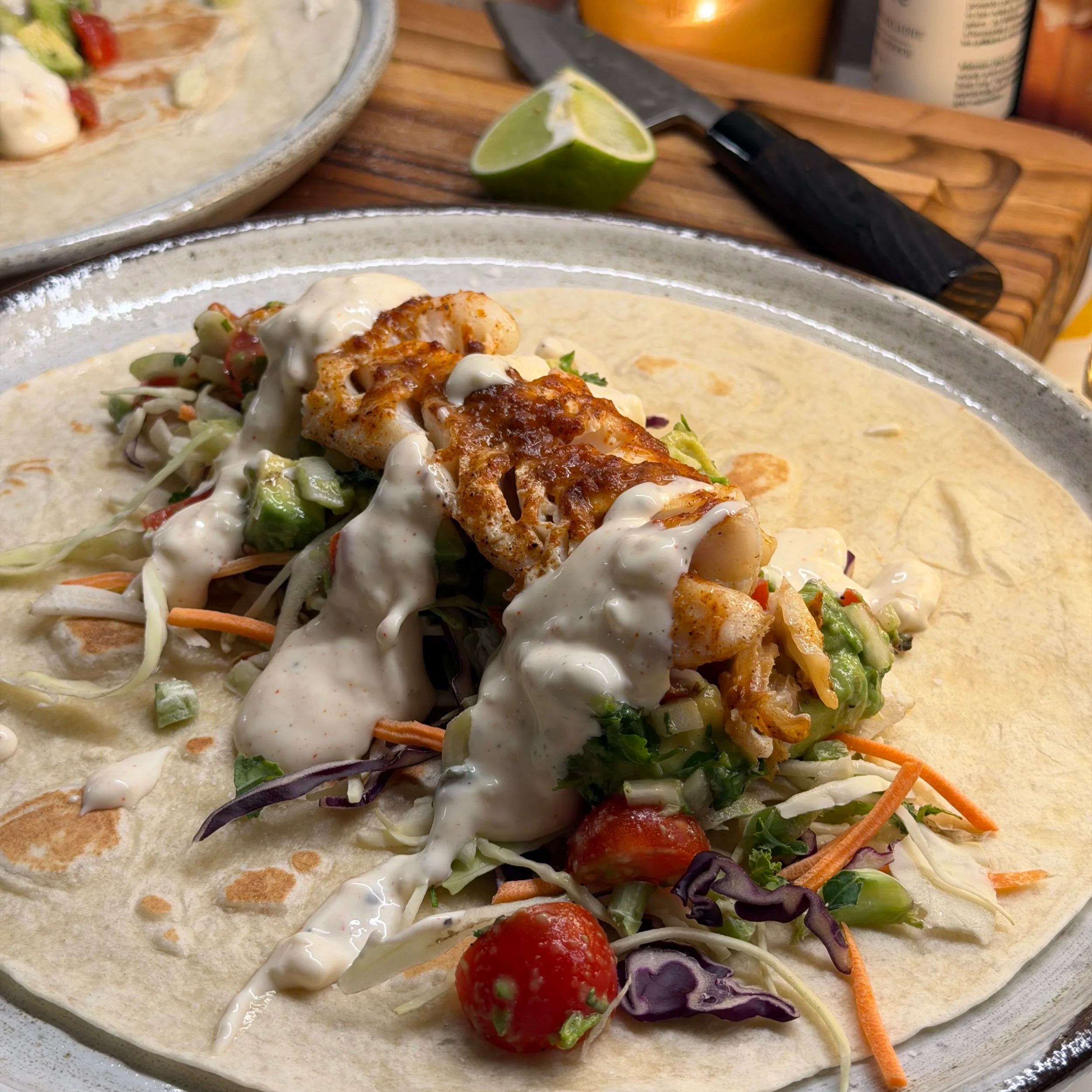 I love how adaptable these are. Small tortillas? Use those. Big ones like I had here? Perfect. Ideally I’d grab the small ones, but my goal this year is to actually finish what’s in my pantry before buying more of the same thing, so this version happened because I had leftover cabbage mix, large tortillas, and frozen haddock waiting in the freezer.